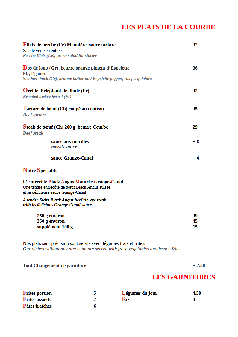 La Courbe du Goût, Café Restaurant de Grange-Canal